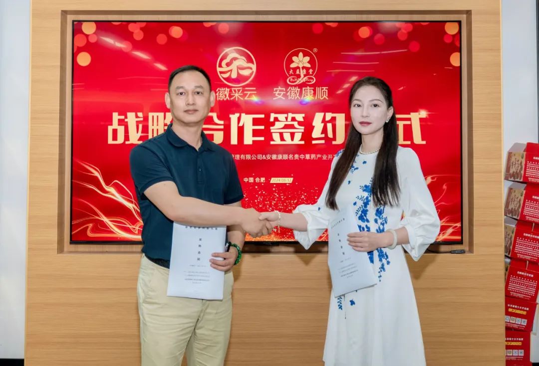 2024年6月12日上午,康顺公司与徽采云签订了战略合作协议。这一合作标志着两家公司将在霍山石斛产业及优质农产品的开发、销售和推广领域携手并肩,共同致力于乡村振兴事业。